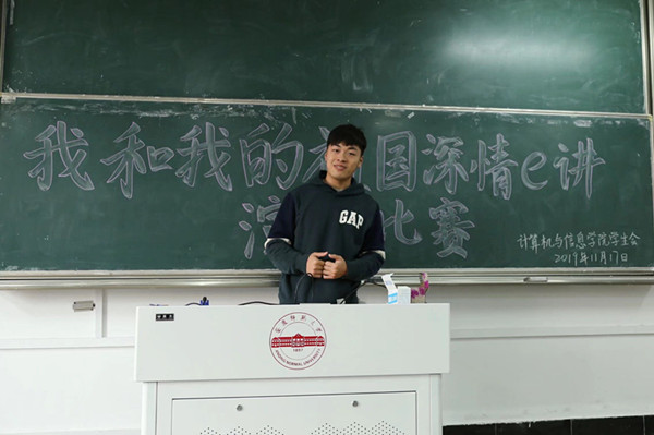 比赛现场,来自学院的15名选手依次登台亮相展现演讲风采。演讲过程中,参赛选手紧紧围绕“我和我的祖国”这一主题,或侃侃而谈、或慷慨激昂、或深情叙述。19级计算机类八班的陈贺同学首先回顾了国家发展,感谢祖国带来的美好生活,接着表明要与祖国共同奋进的决心,最后抒发自己对祖国的热爱之情。环环相扣的叙述,嘹亮坚定的声音,自信昂扬的手势,赢得了在场评委的一致肯定。19级通信工程二班的彭静同学鼓励大家从小事做起,怀着一颗感恩的心,去热爱国家、热爱母校、热爱身边的每一个人,用一颗奋斗的心,从此刻开始,珍惜时间、刻苦学习,做一名具有爱国主义情怀的学子,为祖国的发展贡献自己的力量。19级计算机大类五班的刘开元同学说到:“我们心中要有大爱和责任,要有目标和理想,更要脚踏实地的去践行。只有这样,回首过去,我们才能思绪纷飞,感慨万千;立足今日,我们可以胸有成竹,信心百倍;展望未来,我们方可引吭高歌一路欢笑。我们要和祖国共拼搏,我们要同祖国共进步!”