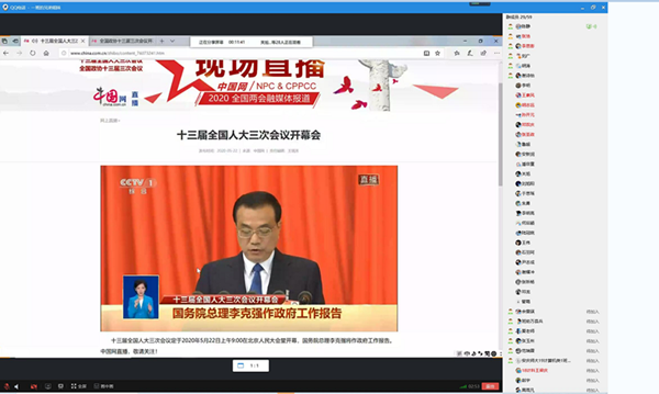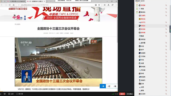 此次线上学习使学院青年学生对2020年全国“两会”的内容、精神有了更深入地了解和更深刻的认识,提高了大家的政治素养和思想水平,增强了社会责任感和使命感,教育引导学生把“两会”展现出来的中国精神,转化成学习工作、担当作为的动力和能力,努力成为堪当大任的新时代中国青年。(撰稿:吴迪、陈文文 摄影:吴迪 审核:江伟 )